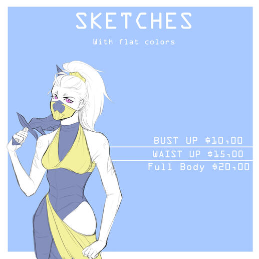COLORED SKETCHES WITH OR WITHOUT FLAT COLORS (UP TO 3) + FLAT COLOR BACKGROUND